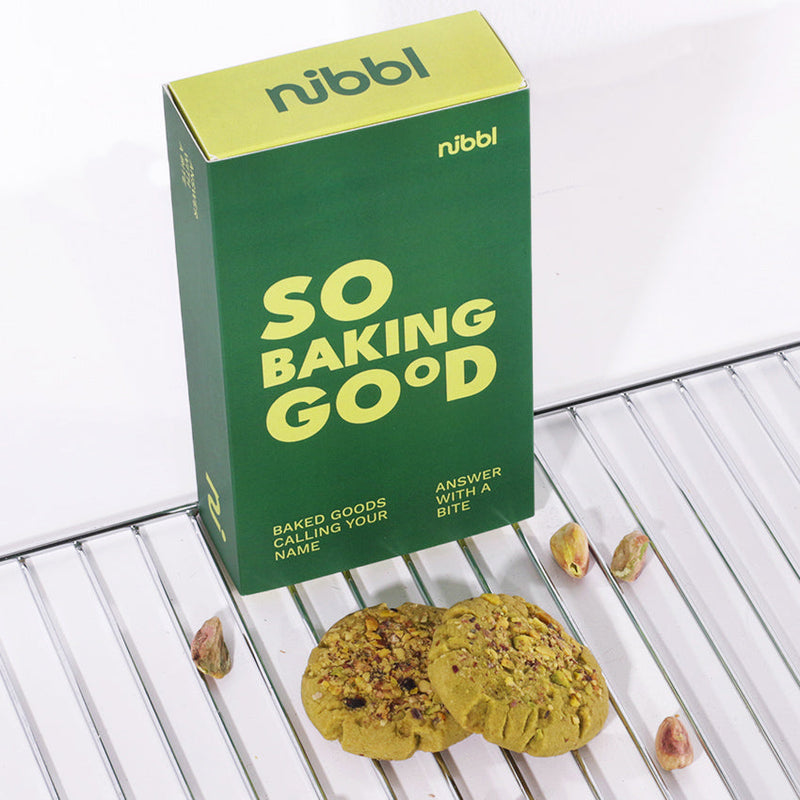 Nikmati kelezatan kukis yang berbeda dengan nibbl Pistachio Promises at 3AM, sentuhan matcha lembut berpadu dengan kacang pistachio dan kepingan white chocolate chip yang menggoda. Rasa yang tenang namun memikat, seperti obrolan tengah malam yang tak ingin berakhir. Kemasan elegan dan konsep premium membuatnya cocok sebagai hadiah atau teman santai di tengah malam tanpa rasa bersalah.