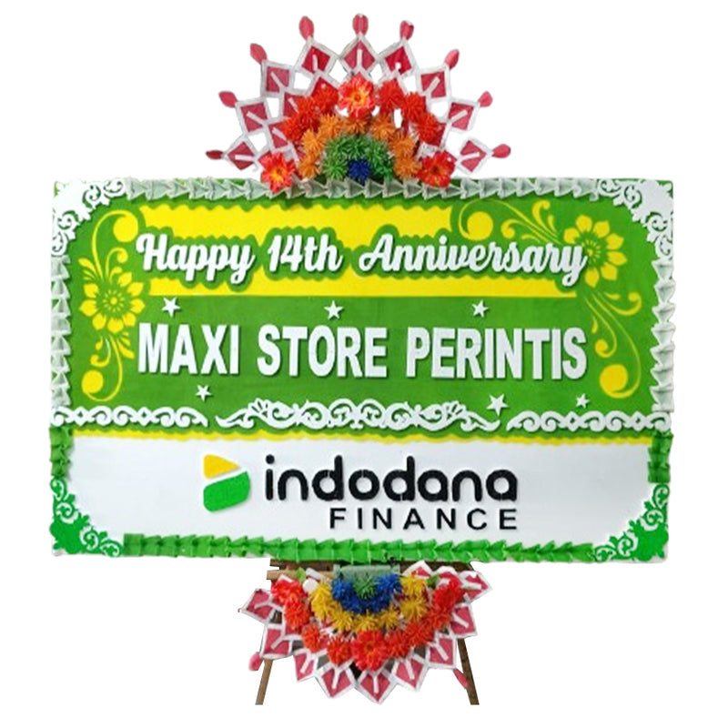 Papan Bunga ini cocok diberikan untuk berbagai kesempatan dan acara kepada kerabat atau rekan Anda. Tersedia dalam ukuran 200 cm x 125 cm. Hadir dengan varian rangkaian bunga fresh dan suyok serta dilengkapi dengan penyangga yang kokoh.