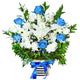 - Rangkaian Bunga Lily Putih, Mawar Putih, Mawar Biru, Krisan, Daisy, dan Fillers