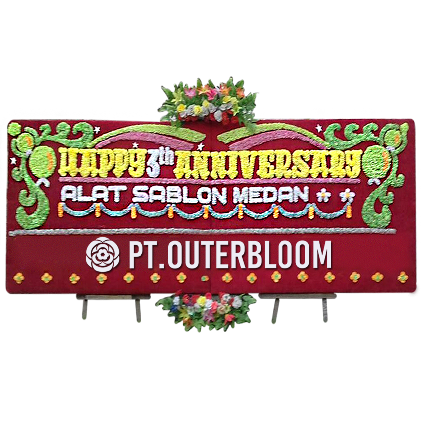 Papan Bunga ini tersedia dalam ukuran 400 cm x 125 cm. Hadir dengan varian rangkaian bunga suyok artificial (bunga plastik) berkualitas yang terletak di dua titik papan bunga. Selain itu, pada bagian pinggir papan dikelilingi dengan list busa yang berkualitas. Papan bunga ini dapat disewa selama 1-2 hari.