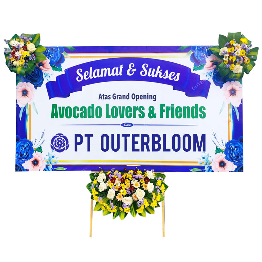 Papan Bunga ini cocok diberikan kepada kerabat atau rekan terdekat Anda yang sedang berbahagia. Tersedia dalam ukuran 200 cm x 100 cm. Hadir dengan varian rangkaian bunga fresh yang terletak di tiga titik, yaitu: bagian atas kiri, bagian atas kanan, dan bawah papan bunga. Pada bagian pinggir papan dikelilingi dengan suyok berkualitas untuk menulis ucapan seperti "Congratulations".