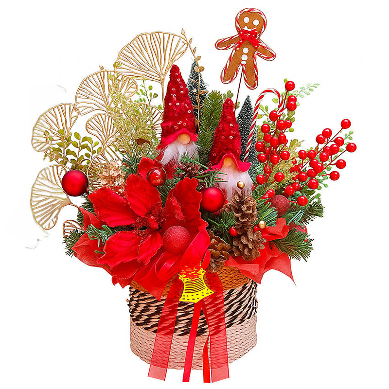 Hadirkan keajaiban musim liburan dengan Holiday Gnome dari Outerbloom, sebuah keranjang bertema gnome yang penuh keceriaan dan kehangatan Natal. Setiap elemen dipilih dengan cermat, dari poinsettia merah yang memikat hingga aksen emas yang elegan. Figur gnome kecil yang menggemaskan serta ornamen roti jahe memberikan karakter yang unik, menjadikan rangkaian ini ideal sebagai hadiah spesial atau dekorasi utama untuk menyambut hari istimewa.