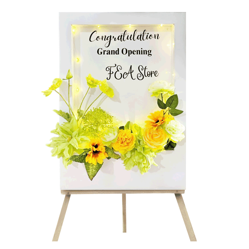 Meriahkan perayaan momen spesial orang terkasih dengan Margot Artificial Flower Board yang mengungkapkan ucapan selamat dan sukses. Desain latar papan berwarna putih dengan flower box di bagian bawahnya. Dihias dengan karangan bunga artifisial bernuansa warna hijau dan kuning, serta lampu LED. Terdapat dua pengaturan lampu LED: statis dan kelap-kelip. Termasuk penyangga yang kuat. Tersedia dalam dua varian ukuran: 40 x 60 cm atau 50 x 70 cm yang dapat dipajang di dalam dan luar ruangan.