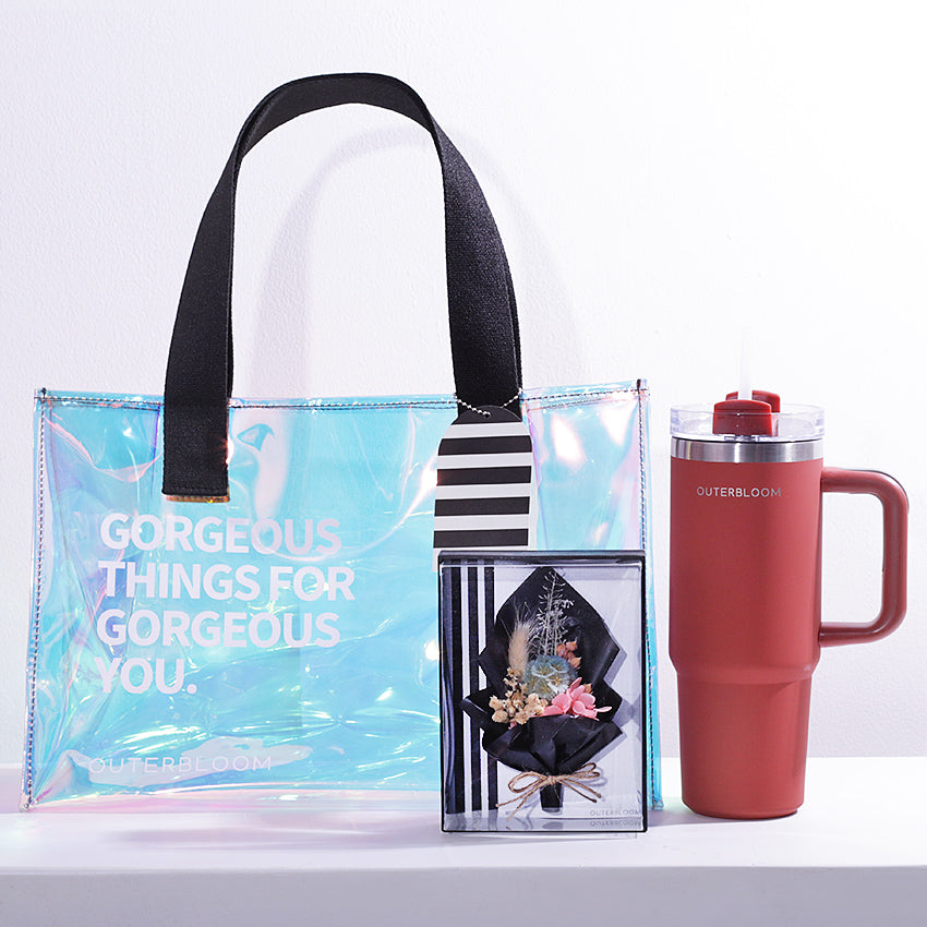 Berikan kejutan istimewa di hari Valentine dengan Enduring Love Hampers - Large. Hadiah elegan ini berisi tumbler stainless steel berkapasitas 900 ml yang mampu menjaga minuman tetap dingin selama berjam-jam. Tak hanya itu, hamper ini juga dilengkapi Moonlit Flower Card, buket bunga kering mini dengan kombinasi indah Scabiosa, Baby’s Breath, Lagurus Bunny Tail, Lino, Thlaspi, Caspia, dan Hydrangea. Dikemas dalam tote bag hologram eksklusif, hamper ini siap menjadi hadiah yang berkesan bagi orang terkasih!