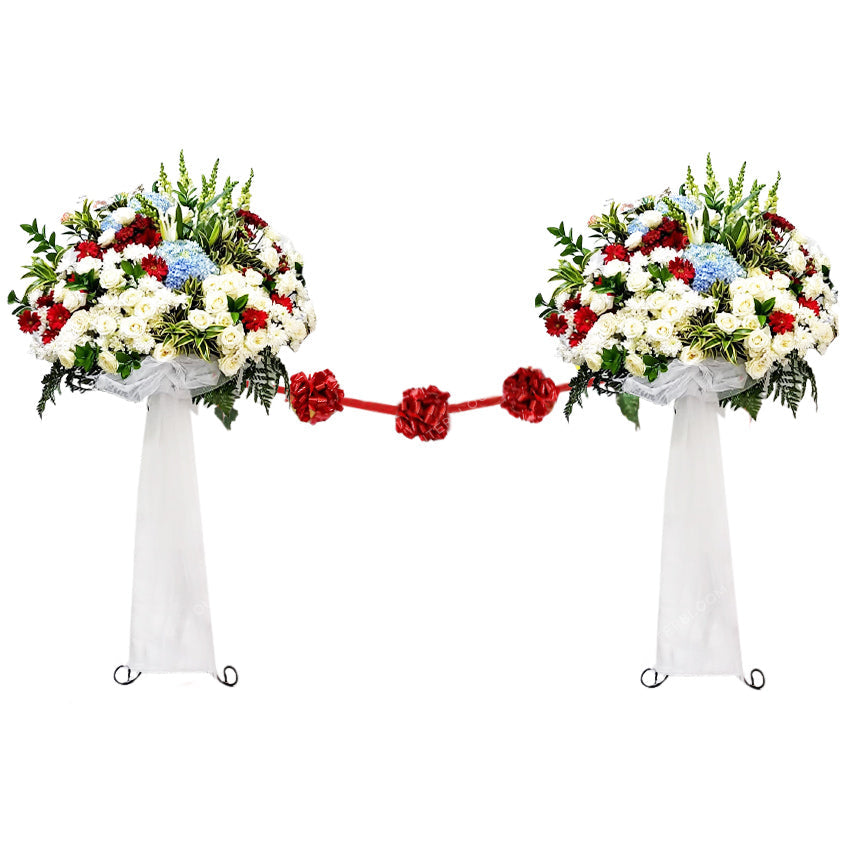 Meriahkan perayaan grand opening dengan Glorious Bloom. Karangan bunga segar bernuansa warna putih dan merah yang mengungkapkan ucapan selamat dan sukses bagi orang terkasih. Dirangkai indah dalam standing vase dan dihias dengan kain tule. Dilengkapi dengan pita peresmian acara yang menghubungkan kedua standing flower. Termasuk gunting untuk memotong pita dan nampan untuk membawanya. Tersedia dalam ukuran tinggi 150 cm yang dapat dipajang di dalam dan luar ruangan.
